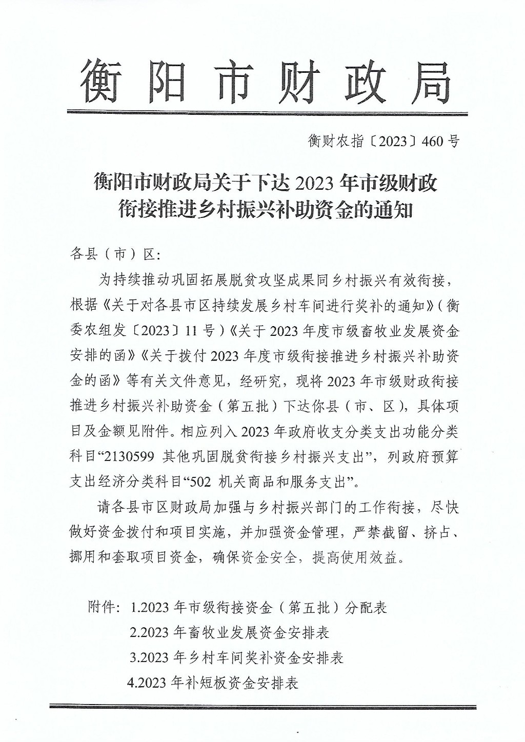 2023年市级财政衔接推进乡村振兴补助资金(第五批)