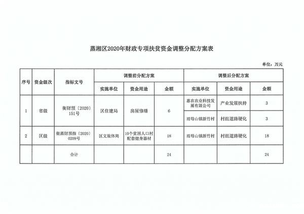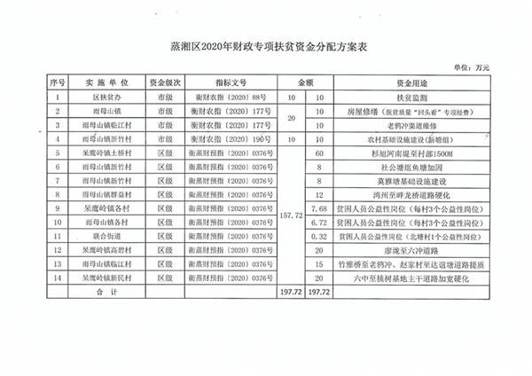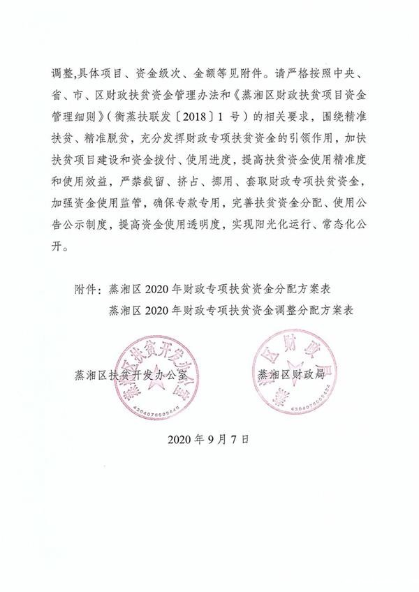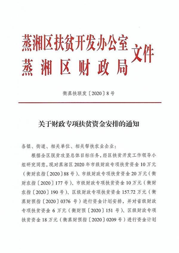 衡蒸扶联发【2020】年8号关于财政专项扶贫资金安排的通知