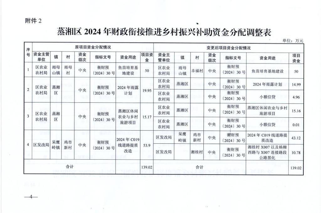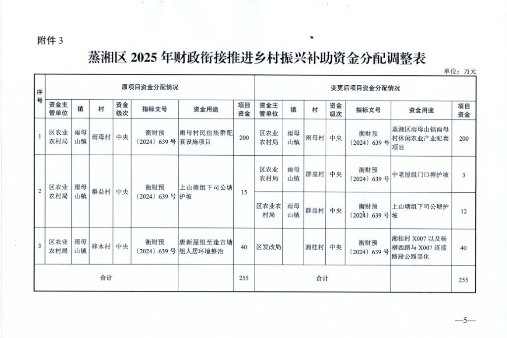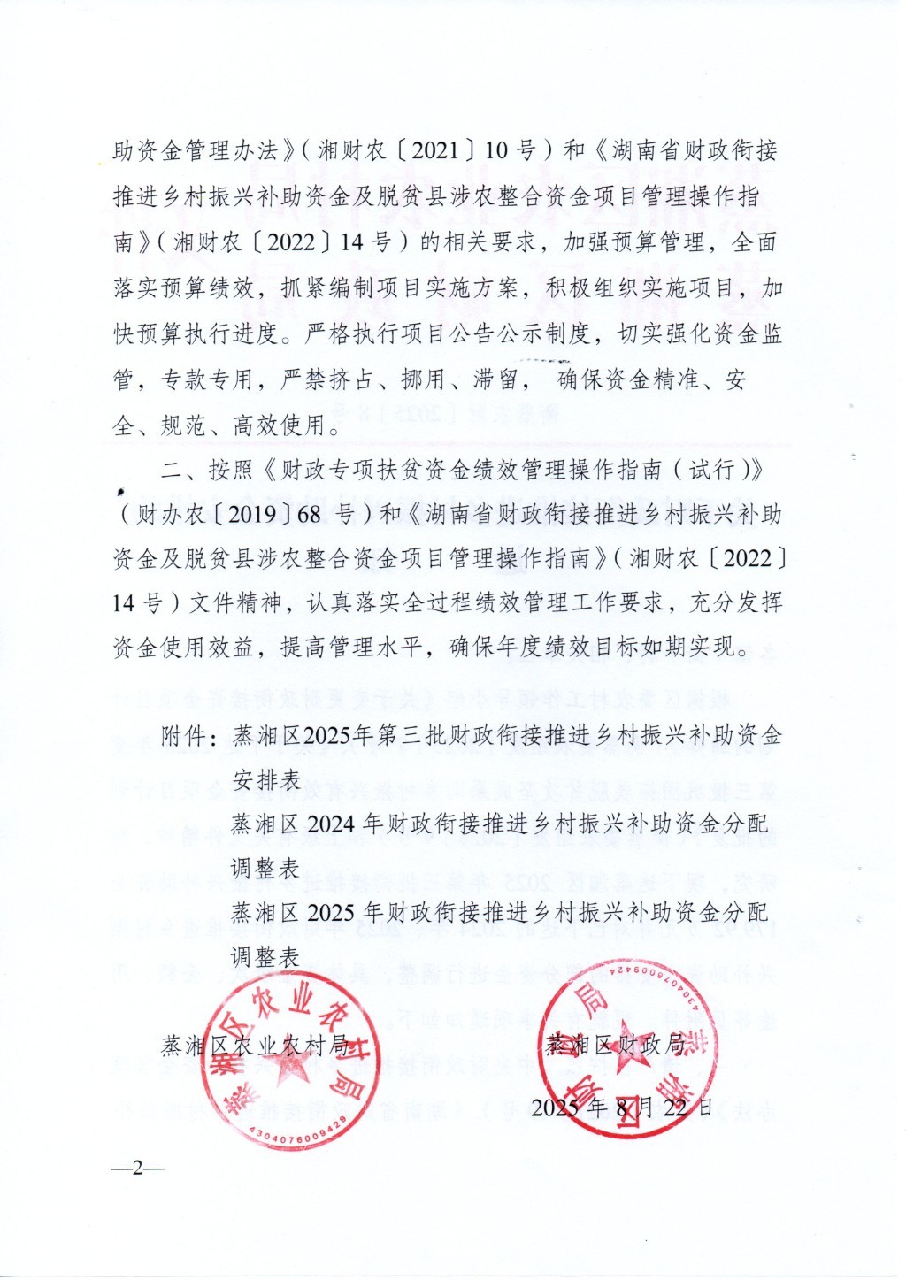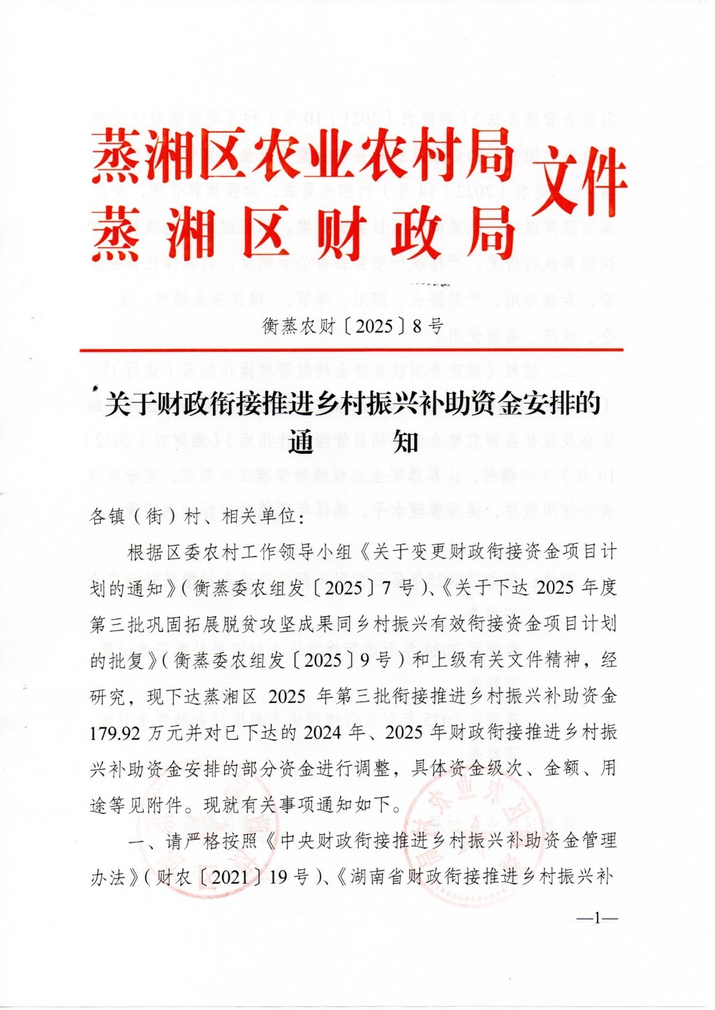 衡蒸农财【2025】8号关于财政衔接推进乡村振兴补助资金安排的通知