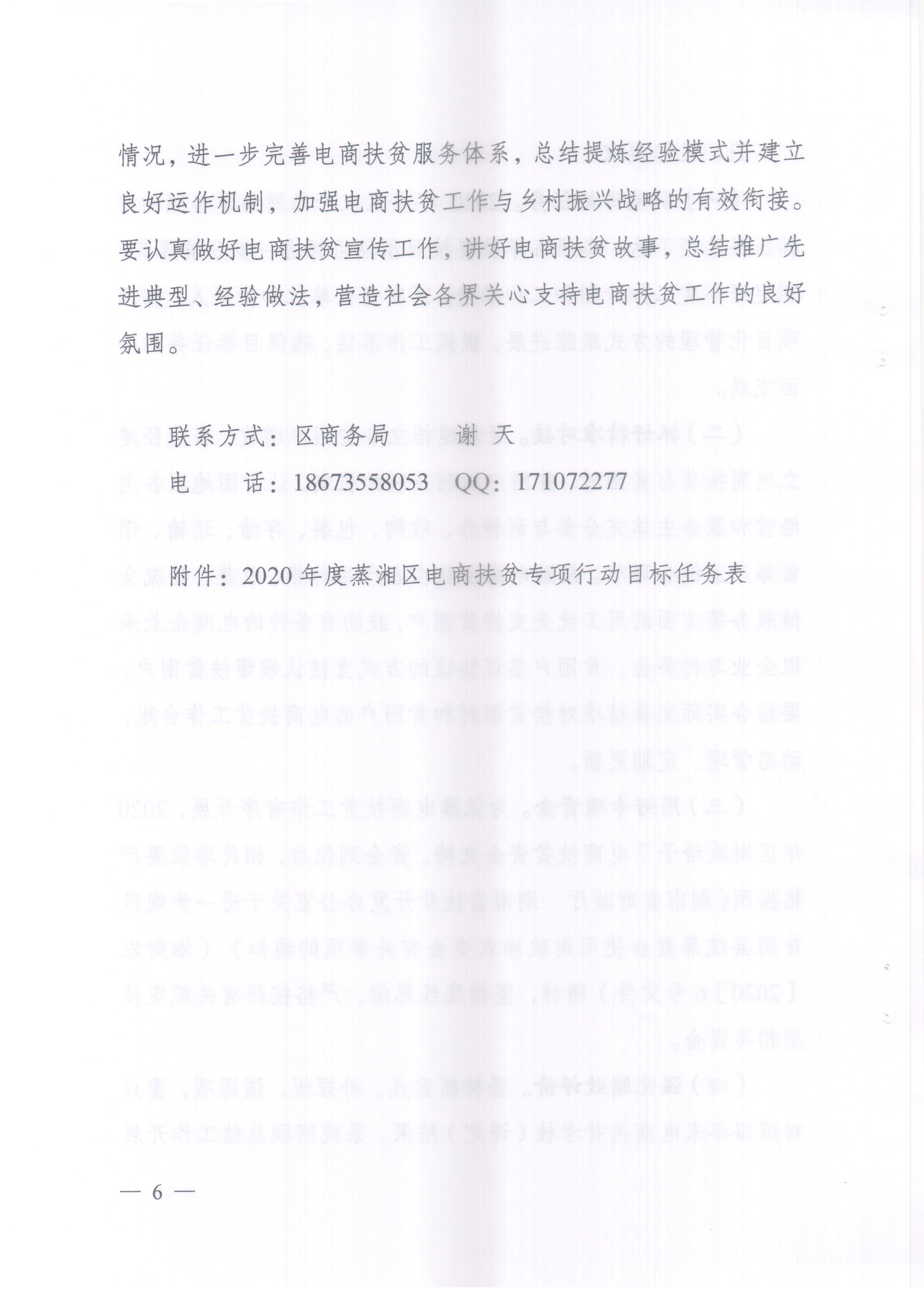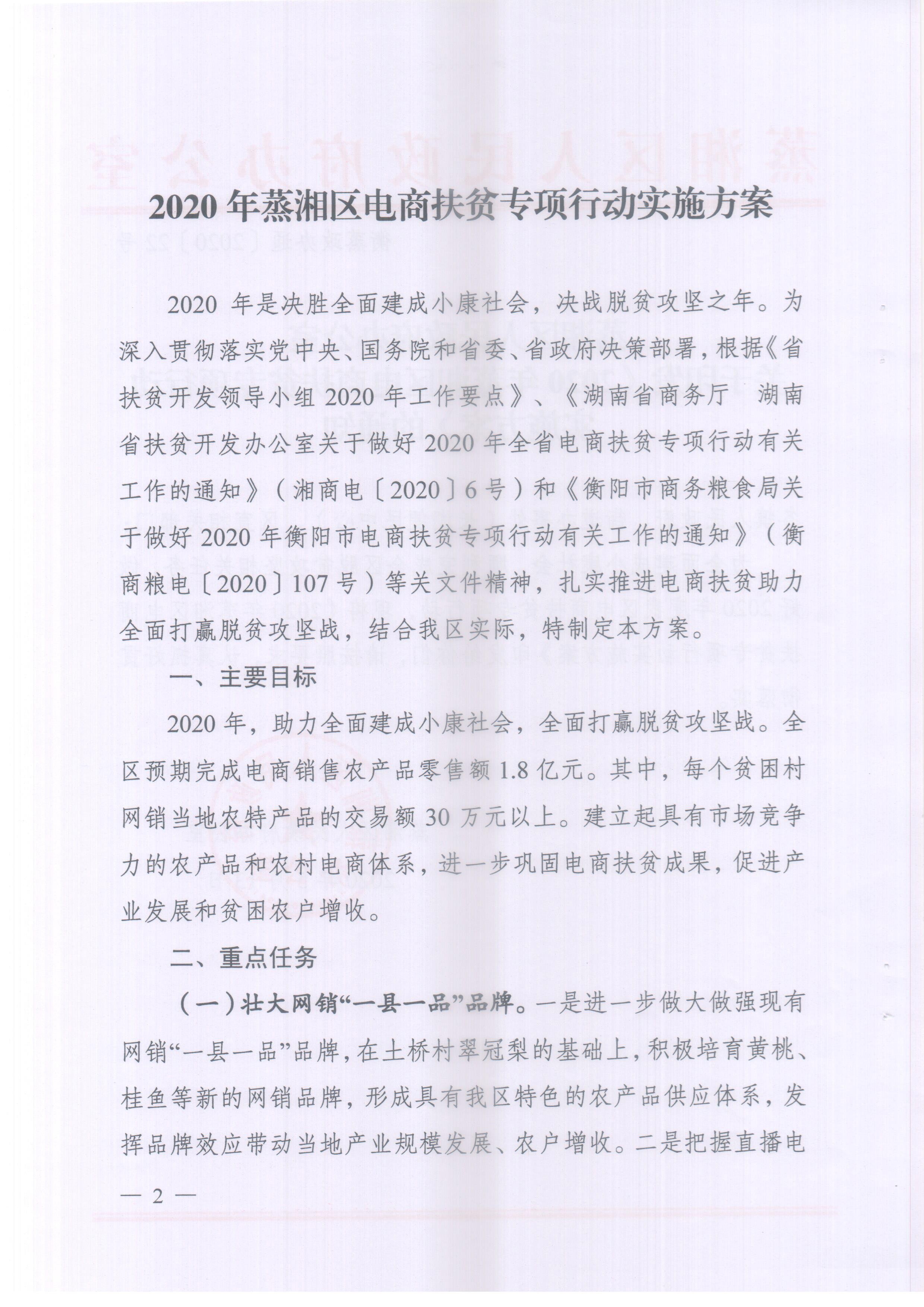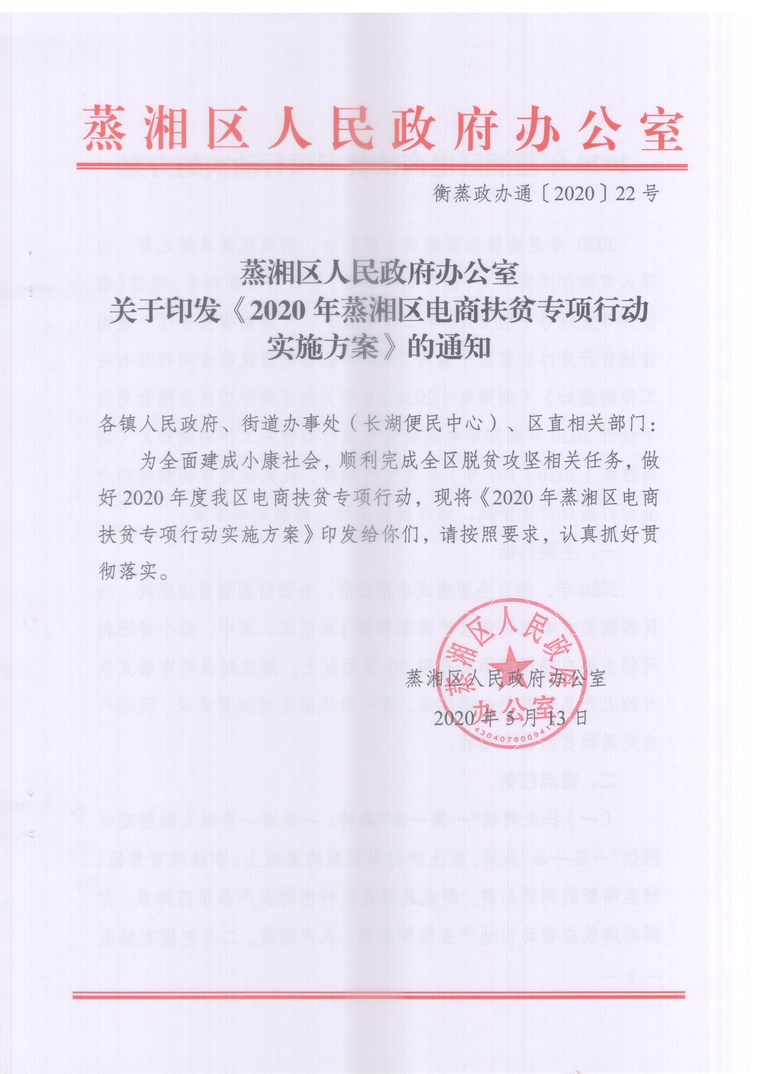 关于印发《2020年蒸湘区电商扶贫专项行动实施方案》的通知